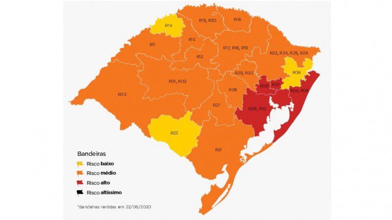 As demais regiões, classificadas na maioria em laranja – 13, no total –, e apenas três em amarelo (risco baixo), permanecem com os níveis divulgados preliminarmente. O mapa pode ser consultado em https://distanciamentocontrolado.rs.gov.br. A sétima semana de vigência do Distanciamento Controlado começa nesta terça-feira (23/6) e segue até as 23h59 de segunda-feira (29/6).