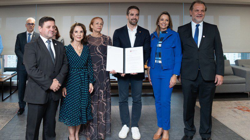 Foi formalizado, nesta terça-feira (28/11), o repasse de R$ 33,2 milhões para investimento nas instituições estaduais de ensino abrangidas pelo Programa RS Seguro e nas Escolas de Tempo Integral no Estado. Os recursos foram repassados pelo Tribunal de Justiça do Rio Grande do Sul (TJRS) para a Secretaria da Educação (Seduc). A assinatura foi realizada em uma cerimônia na sede do TJRS, em Porto Alegre, com a presença do governador Eduardo Leite e da titular da Seduc, Raquel Teixeira.