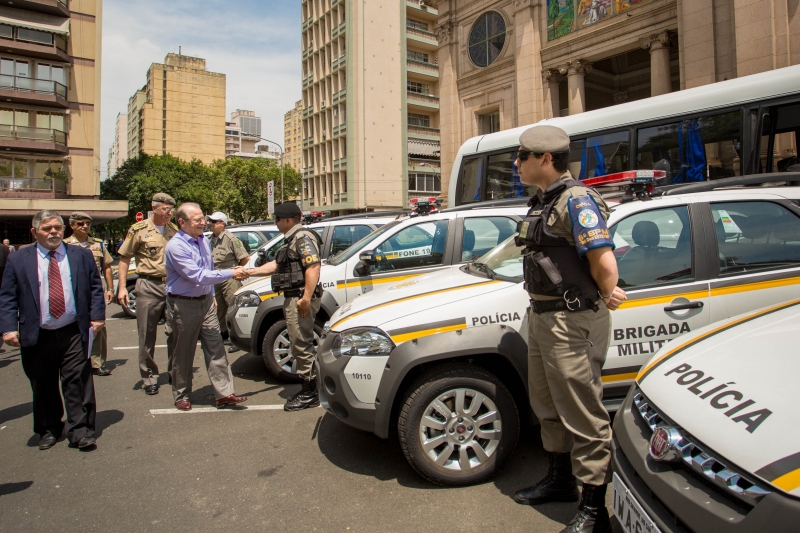 O governador Tarso Genro entregou 88 novas viaturas à Brigada Militar nesta quarta-feira (19). Os veículos reforçarão o policiamento ostensivo de 45 municípios gaúchos. O investimento é de R$ 5,08 milhões, por meio do Programa de Apoio ao Investimento dos Estados e Distrito Federal (Proinveste-BNDES). O ato oficial ocorreu na Praça da Matriz, em frente ao Palácio Piratini.
