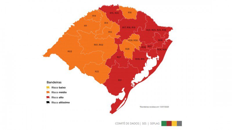 Somam-se a elas Porto Alegre, Canoas, Capão da Canoa e Pelotas, que já haviam sido classificadas com alto risco na semana anterior e não poderiam ter regressão na bandeira.
