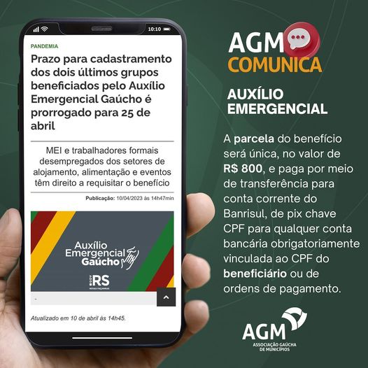 MEI e trabalhadores formais desempregados dos setores de alojamento, alimentação e eventos têm direito a requisitar o benefício. O cadastramento começou em 10 de março e, conforme o Centro de Tecnologia da Informação e Comunicação do Estado do Rio Grande do Sul (Procergs), até o momento foram contabilizados 11.614 registros, sendo 4.346 referentes a microempreendedores individuais (MEI) e 7.268 a trabalhadores formais desligados, de uma projeção de 58.410 e 18.530, respectivamente. 📲Mais em www.agm.org.br