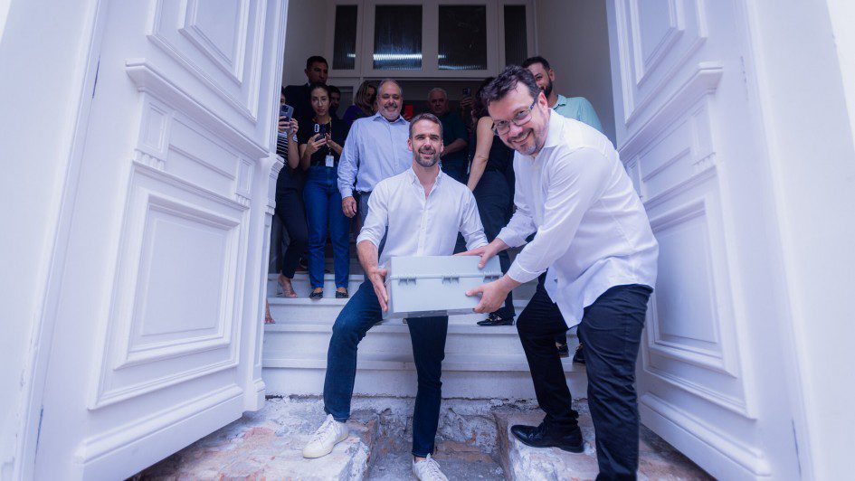 Às vésperas do término das obras do prédio da Casa Civil, na rua Duque de Caxias, um gesto simbólico reforça a conexão entre passado, presente e futuro. Uma cápsula do tempo foi colocada na porta principal da edificação na manhã desta quinta-feira (6/2) pelo governador Eduardo Leite e pelo secretário-chefe da Casa Civil, Artur Lemos, marcando a etapa final de requalificação da estrutura, que integra o Complexo Palácio Piratini. A cápsula deverá ser aberta daqui a 50 anos, em 2075.